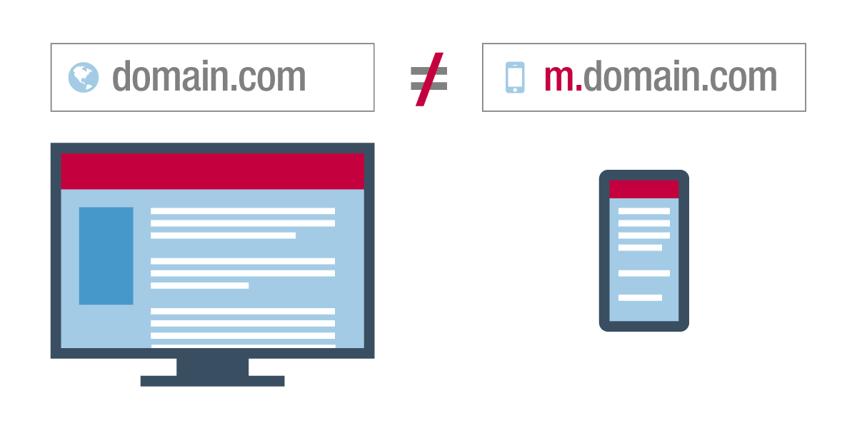 When the mobile revolution began, many websites opted to create a separate mobile site with a different URL starting with the “m-dot” prefix (e.g., m.domain.com, or sometimes domain.com/mobile). When a mobile user visited the main site, they would be redirected to the m-dot site, which usually offered fewer pages, a simple navigation, and less content. The upside of m-dot sites was the ability to quickly create a fully mobile website, highlighting things mobile users might be looking for, such as phone numbers and directions. The downside: Maintaining and managing two different websites required extra resources and made link-sharing problematic. And users looking for content from the desktop version might find it missing from the m-dot site.