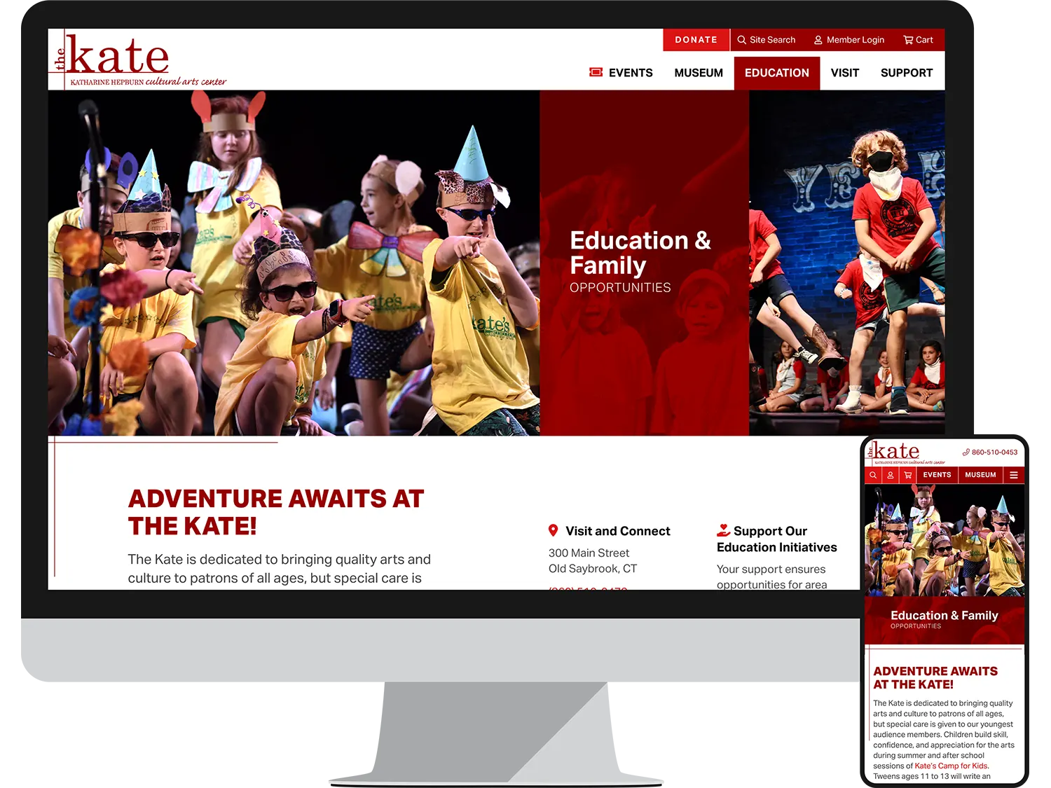 Since their previous website launch in 2015, The Kate had expanded their programs, added more performances, and reimagined their museum. Technology had also rapidly advanced, and more than half of website visits were now from mobile devices. To ensure The Kate would keep pace, Web Solutions provided a complete website redesign, with a clearer navigation system, updated content, and improved functionality.