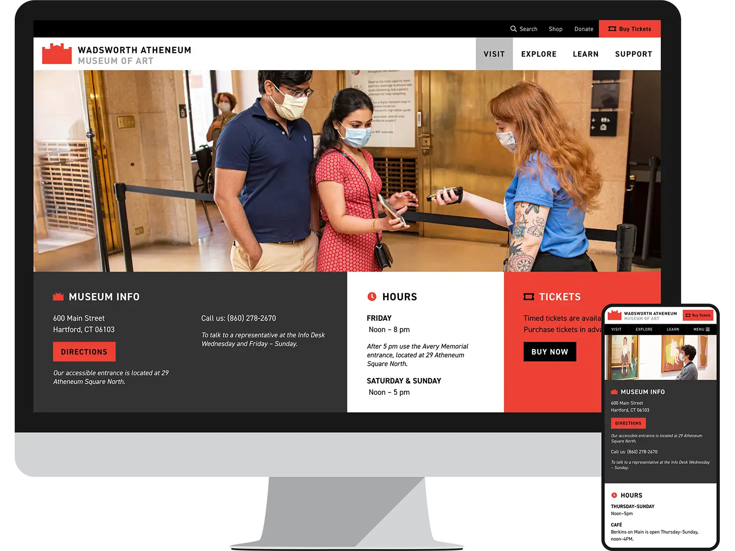 To help site visitors quickly find the information they’re looking for, we designed landing pages for the Visit, Explore, Learn, and Support sections.